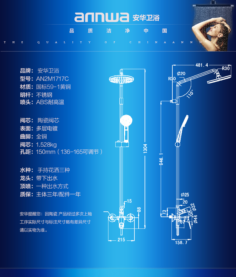安華衛(wèi)浴 現(xiàn)代增壓淋浴花灑套裝單把升降明桿淋浴花灑家裝 編號(hào):ECS001852