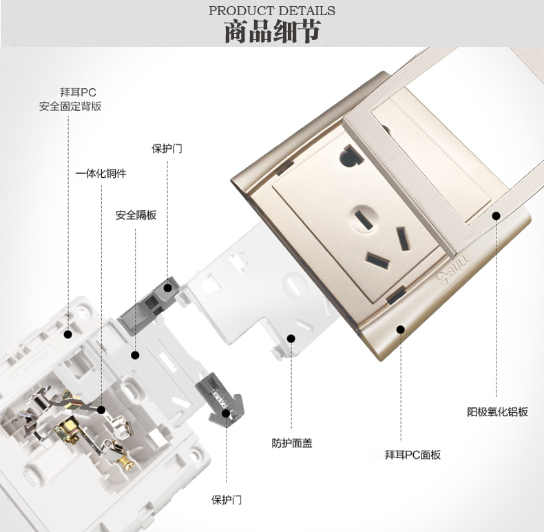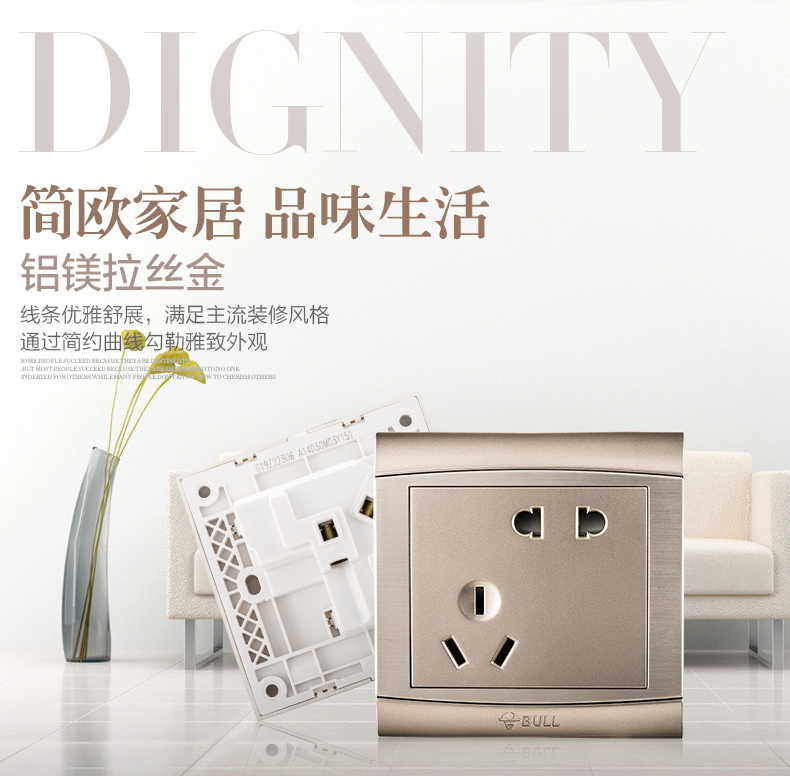 公牛香檳金開關(guān)玻璃電源墻壁面板插座開關(guān) 編號(hào):SHZS001954